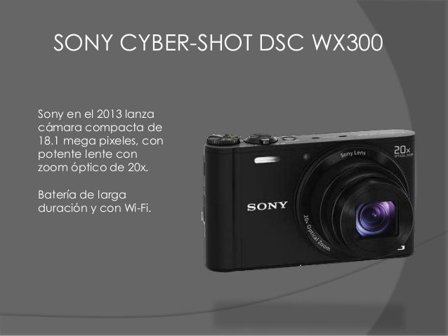 18. SONY CYBER-SHOT DSC WX300 Sony en el 2013 lanza cámara compacta de 18.1 mega pixeles, con potente lente con zoom óptico de 20x. Batería de larga duración y con Wi-Fi.