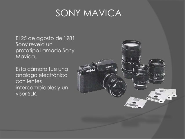 9. El 25 de agosto de 1981 Sony revela un prototipo llamado Sony Mavica. Esta cámara fue una análoga electrónica con lentes intercambiables y un visor SLR. SONY MAVICA